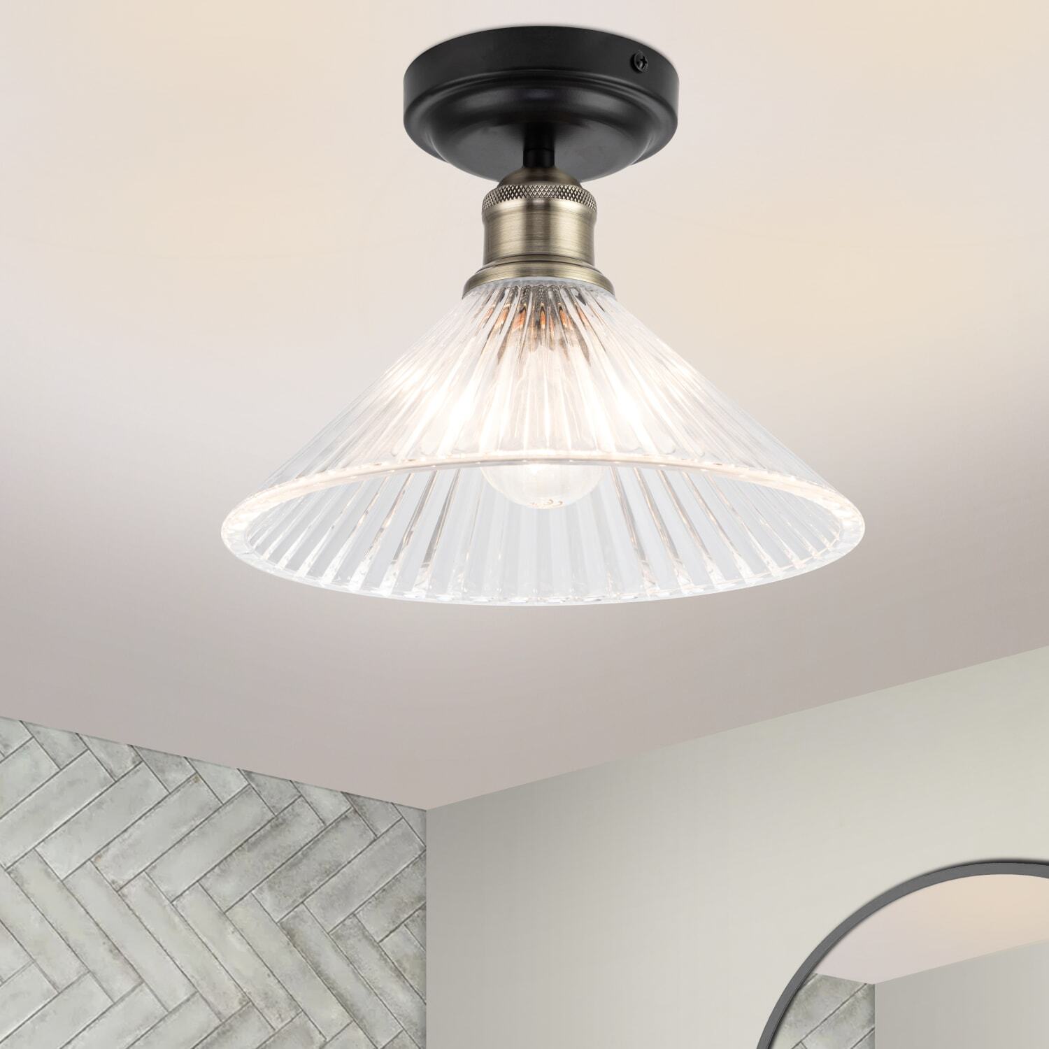 Illuminate your home with the captivating Bowley Bathroom Classic Ribbed Glass Ceiling Flush Light. A true testament to classic design, it features a refined matt black finish, and a captivating glass flush mount that casts a beautiful glow. Compatible with E27 bulbs, it provides ample illumination for any space. Ideal for bathrooms or ensuites, it perfectly complements traditional, classic, or transitional interior styles, adding a touch of sophistication and charm.