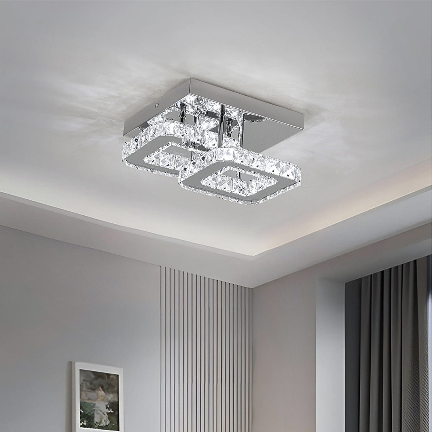 Illuminate your home with unmatched elegance using our exquisite ceiling light. Combining dazzling LED lights with high-quality crystals, this fixture produces mesmerizing lighting effects that enhance the ambiance of any room. Perfect for luxurious living rooms or grand stairways, its classic design adds a touch of sophistication to your space. The durable crystals maintain their clarity and refractive brilliance, ensuring a lasting enchantment that will continue to captivate for years.